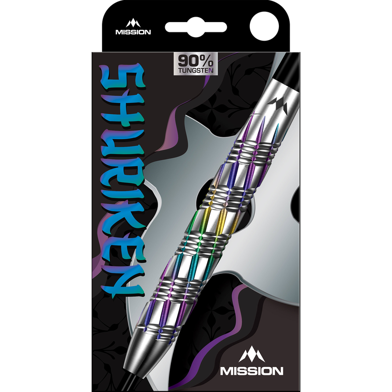 Become a star on the oche with the Mission Shuriken Darts! Named after the Japanese weapon in the shape of a star, these darts are made of a 90% tungsten material and includes an intriguing pattern of spiral ring and milled cuts along the 50mm barrel.