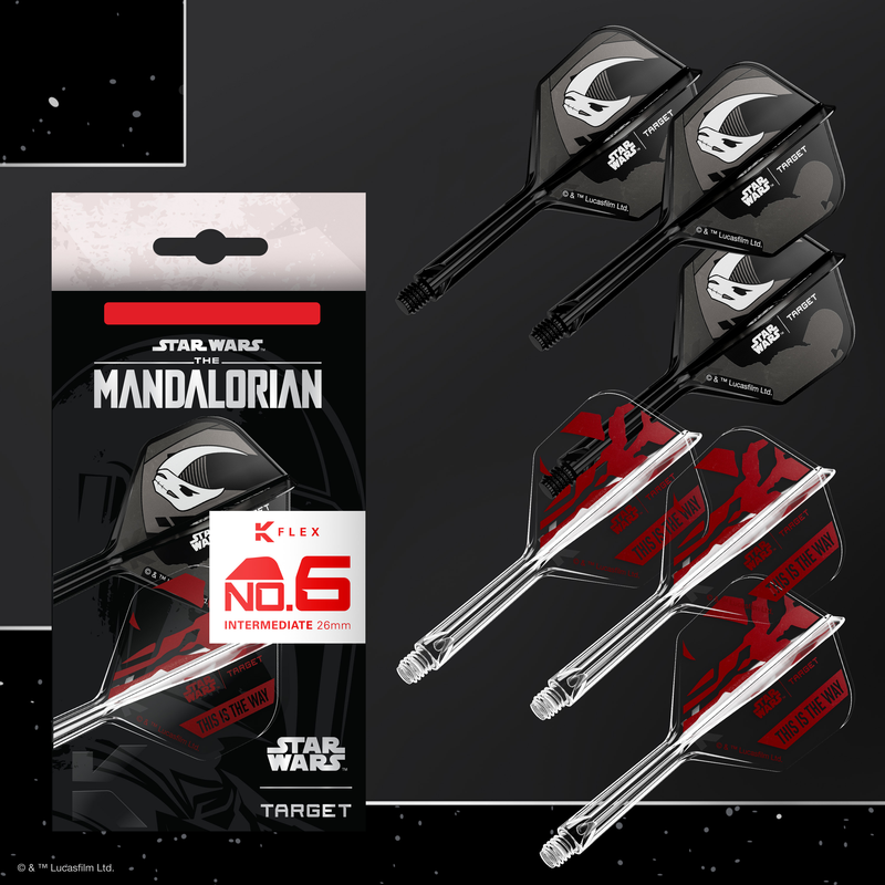 Upgrade your setup with the STAR WARS™ | TARGET Mandalorian K-Flex Integrated Flights and Shafts Multipack, created as an official collaboration with the Walt Disney Company.
