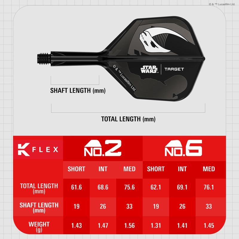 - 6 x Star Wars Mandalorian K-Flex Flights & Shafts