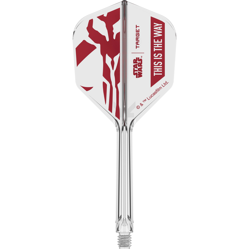 This set includes 6 K-Flex integrated flight and shaft systems, with 3 of each Mandalorian-inspired design. One design features a sleek black base with helmet graphics, while the other showcases a clear base with striking red Mandalorian-inspired graphics, creating a bold contrast and allowing players to customise their setup with a unique visual style.
