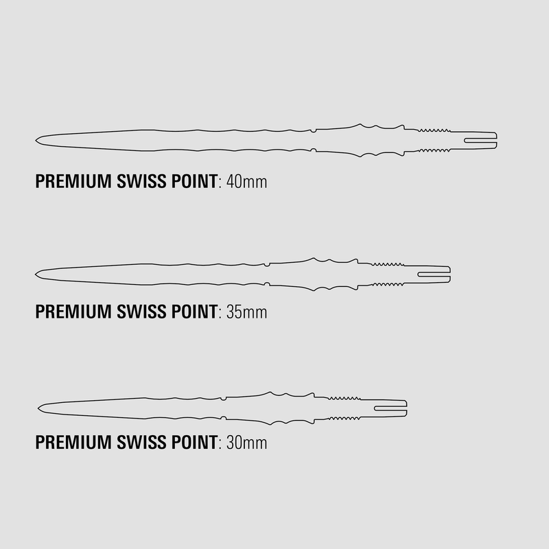 Constructed from premium stainless steel and strengthened through a vacuum hardening process, the Japan Premium Swiss Point offers exceptional durability, reduced flight deflection, and consistent flight path stability — ensuring long-lasting, reliable performance.